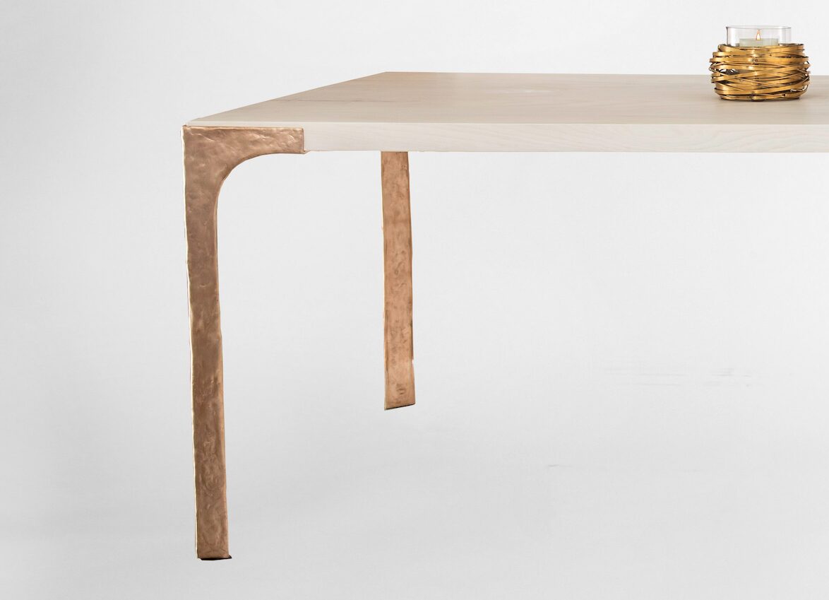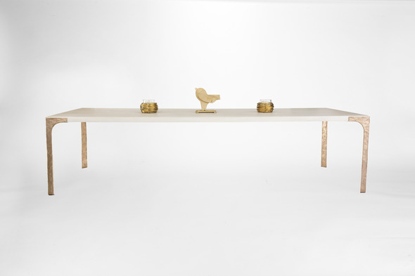 Cast Bronze Bases, made of bleached ash with whitewash. This table is available in any size length or width